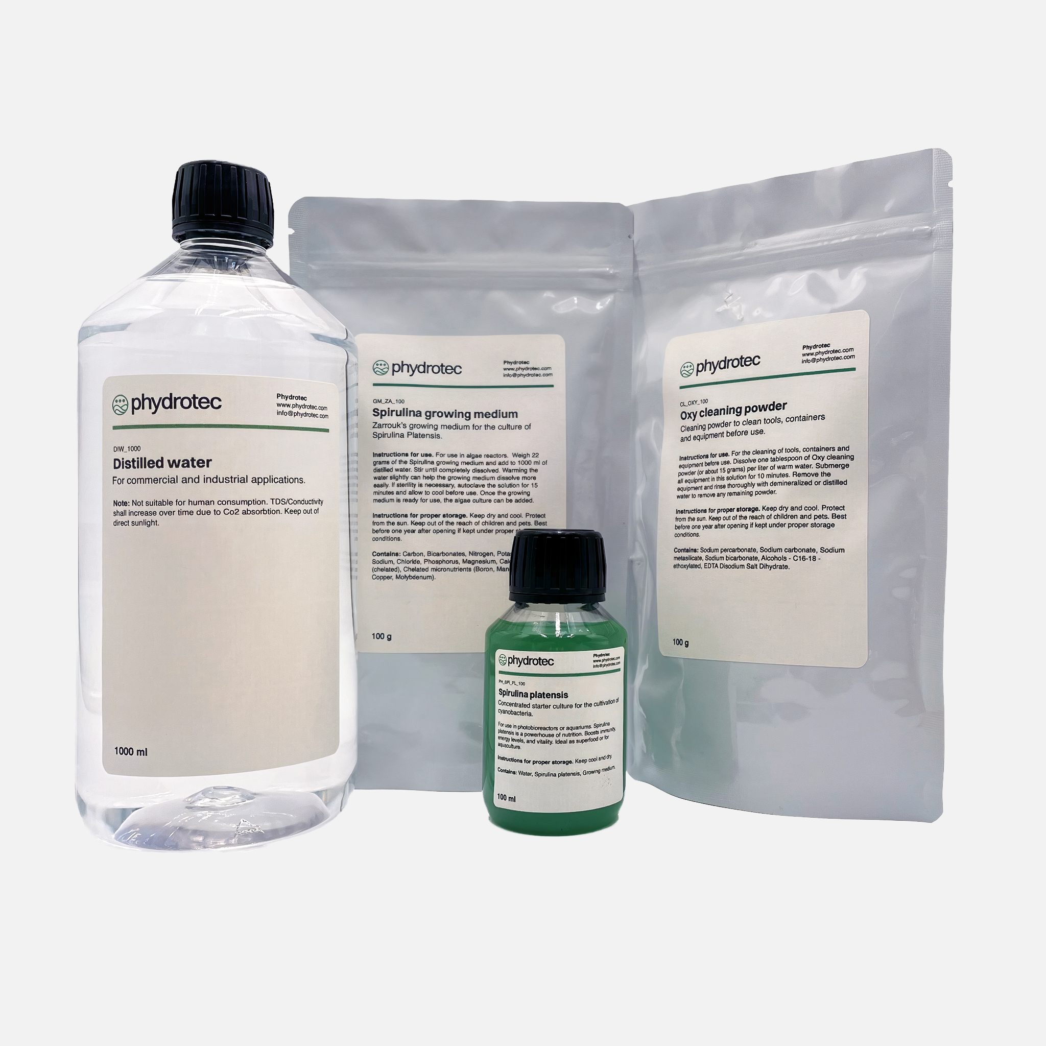 – 100 g Spirulina growth medium (Zarrouk powder): Provides all essential nutrients Spirulina needs to grow.